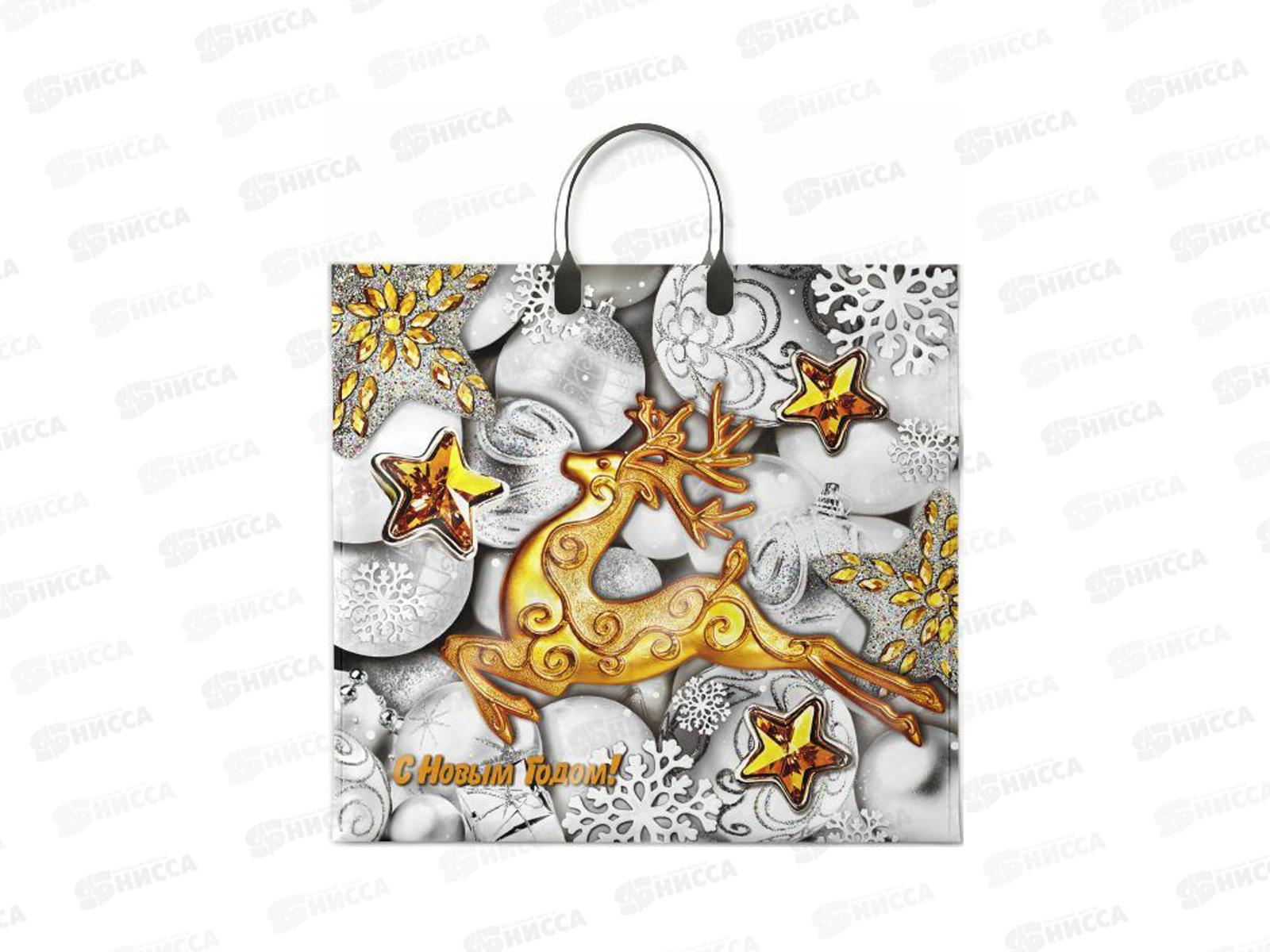 Пакет с пластиковой ручкой Новый Год 38*35 Серебро *10/100
