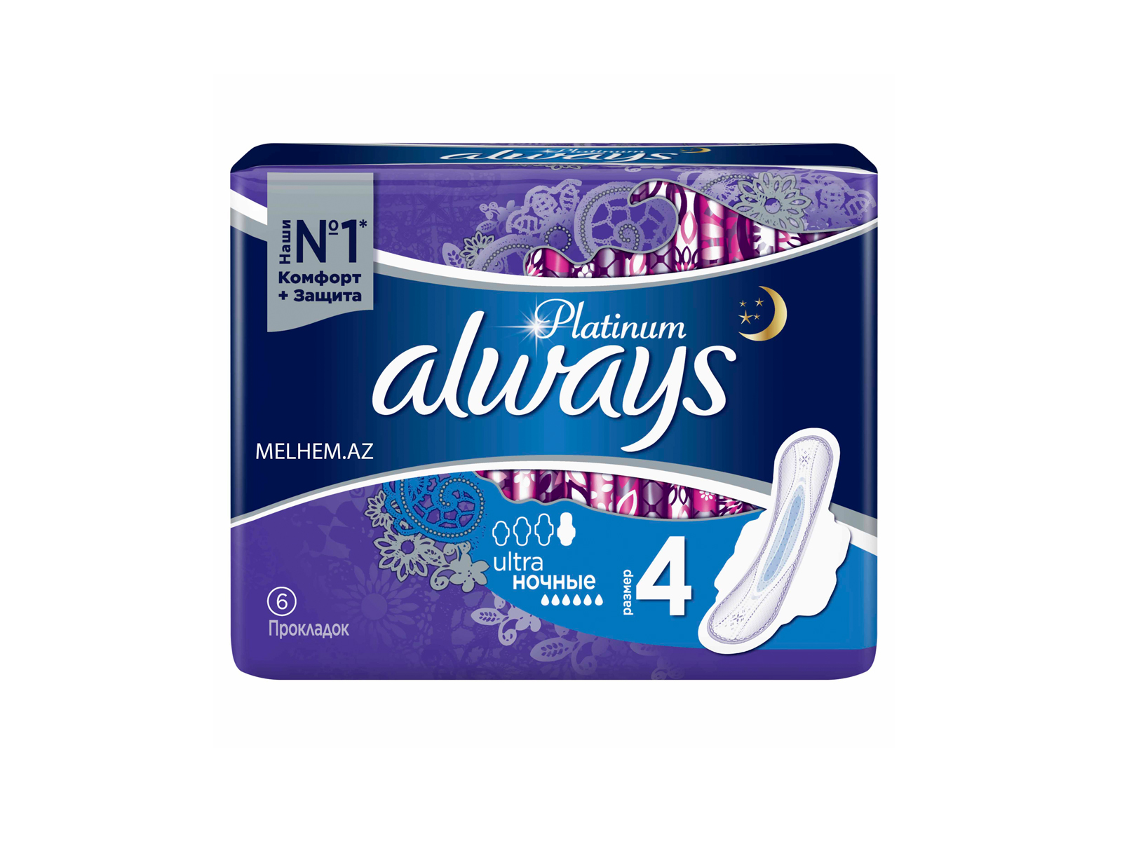Гигиенические прокладки ALWAYS Platinum Ultra ночные одновременно обеспечивают большую мягкость и экстразащиту (по сравнению с ALWAYS Ultra). Благодаря 1000 мягких микроподушечек, действующих как боковые барьерчики, и внутреннему слою повышенной впитываемости ALWAYS Platinum - номер 1 для защиты и мягкости от ALWAYS. Технология нейтрализации запаха устраняет, а не маскирует запахи. Кроме того, ALWAYS Platinum всего 3 мм толщиной обеспечивают великолепную защиту и мягкость на всю ночь.