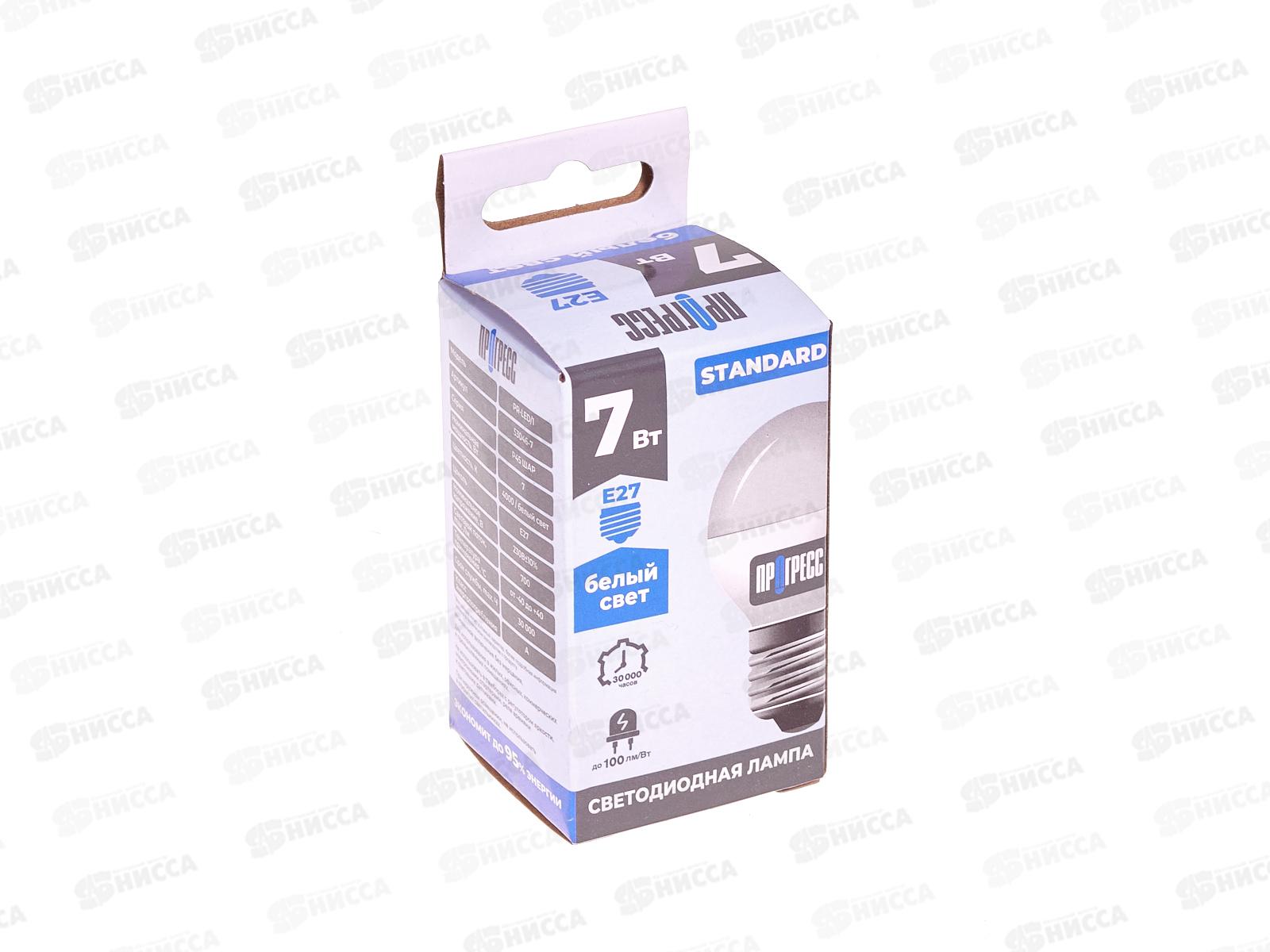 Лампа светодиодная Прогресс Standard 7Вт E27 P45 белый свет *100