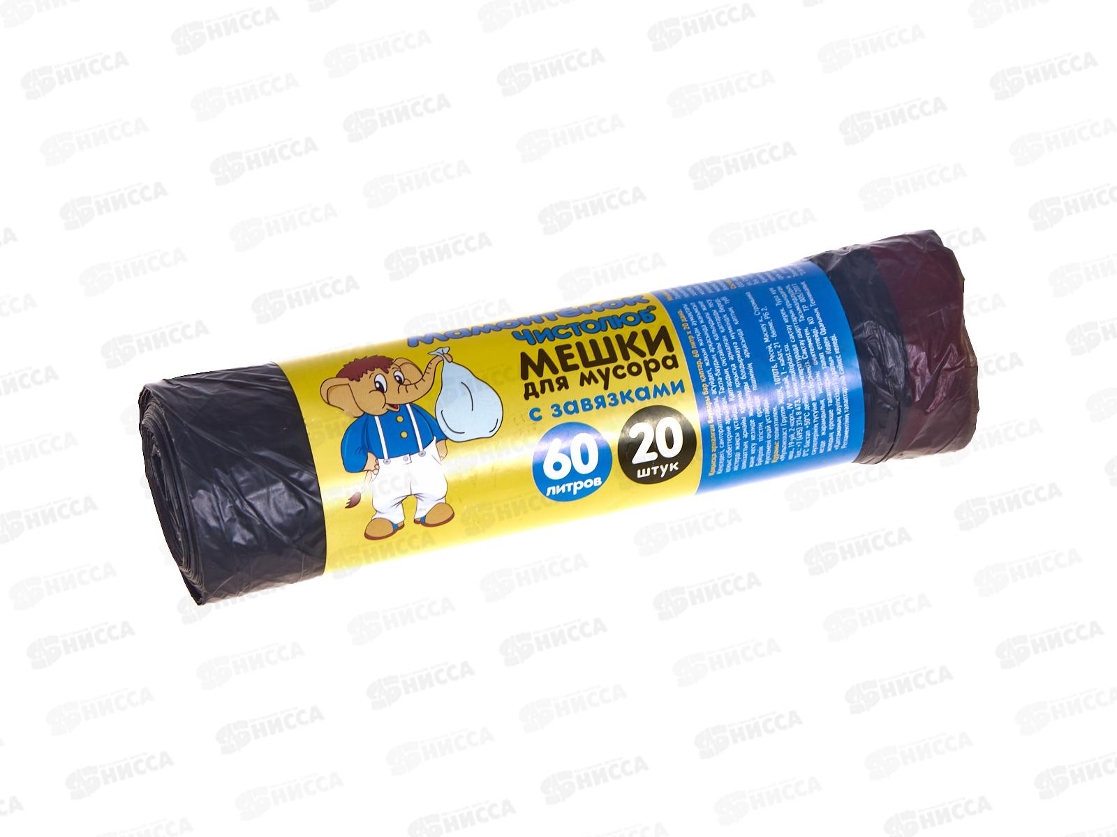 Мешки для мусора 60л 20шт "Мамонтенок" с завязками 13мкм *25