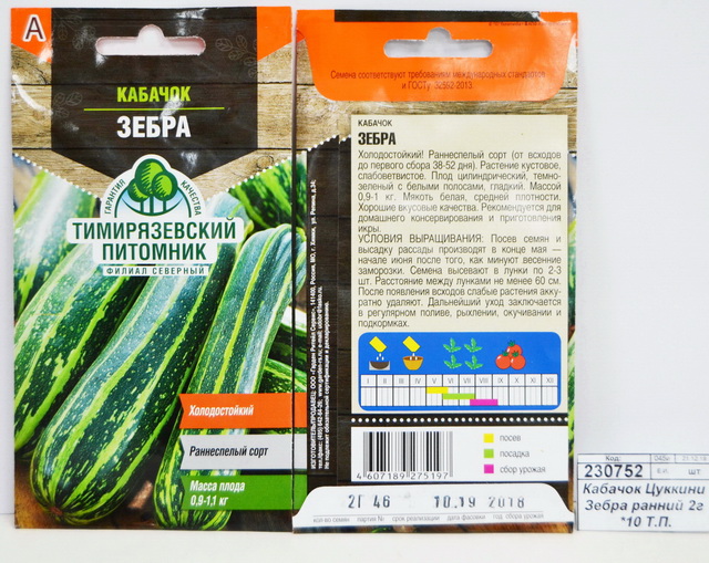 Кабачок Цуккини Зебра ранний 2 грамма *10 Т.П.