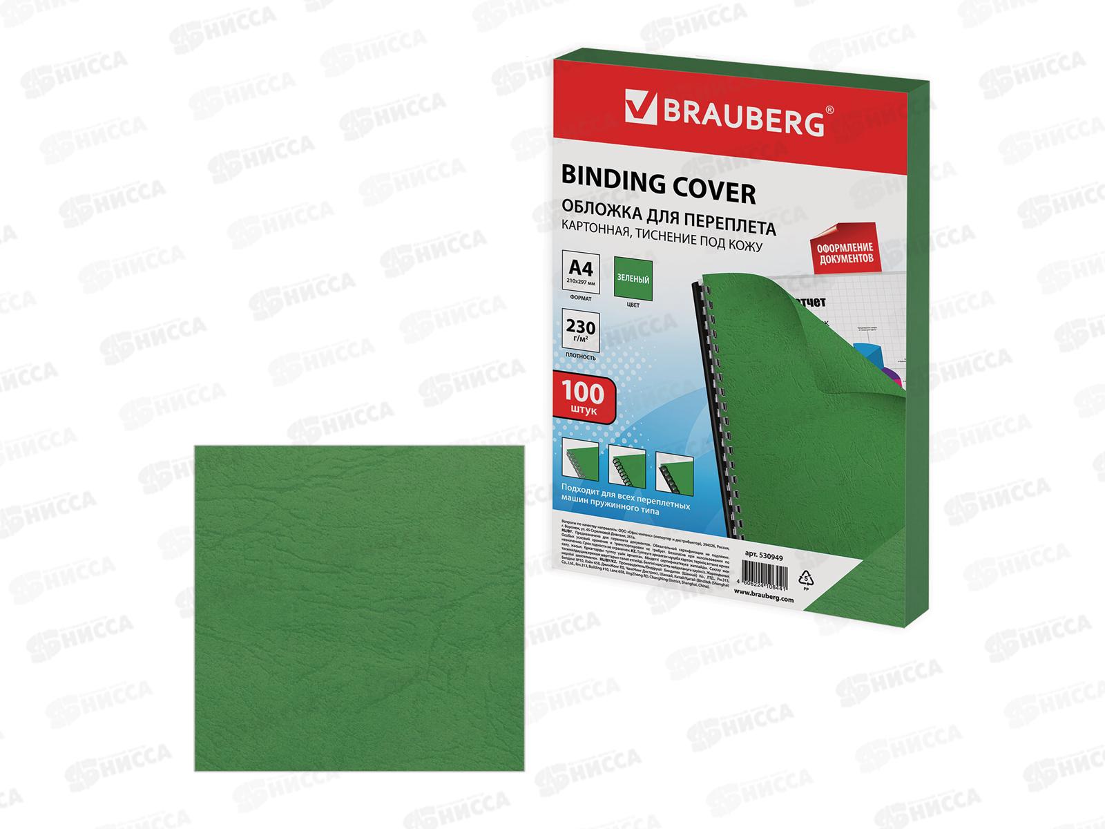 Обложка для переплета А4 200мкм зеленый картон,100шт. BRAU,530949