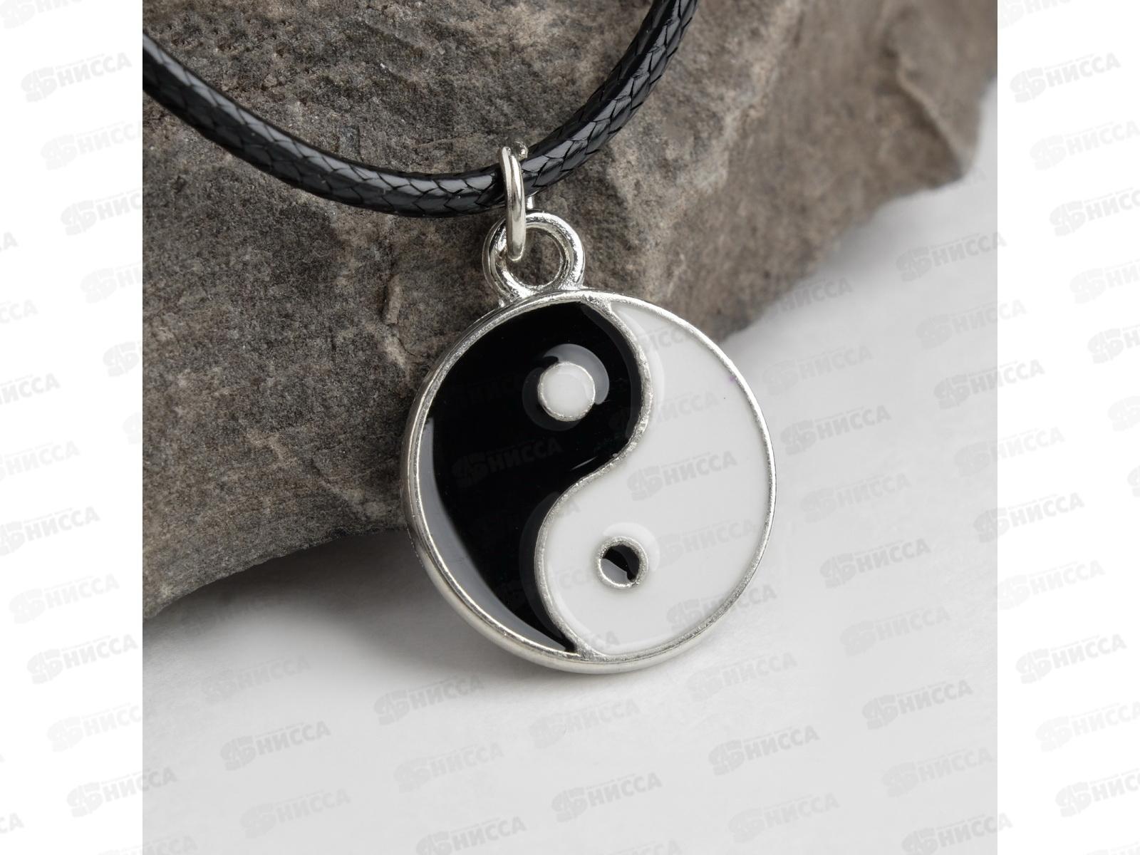 Кулон на шнурке "Инь-Ян" чёрно-белый в серебре 1699798