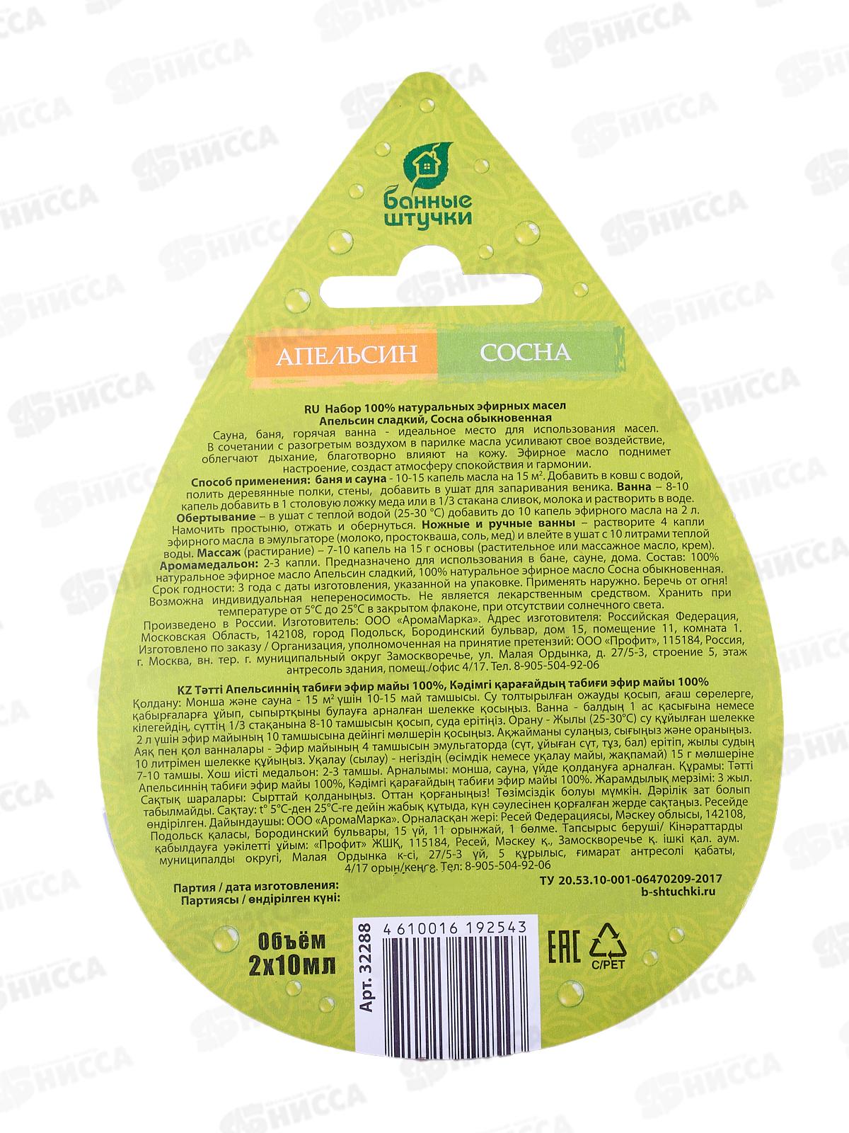 Набор эфирных масел КАПЛЯ"Апельсин+сосна" по 10мл "Банные штучки" *20