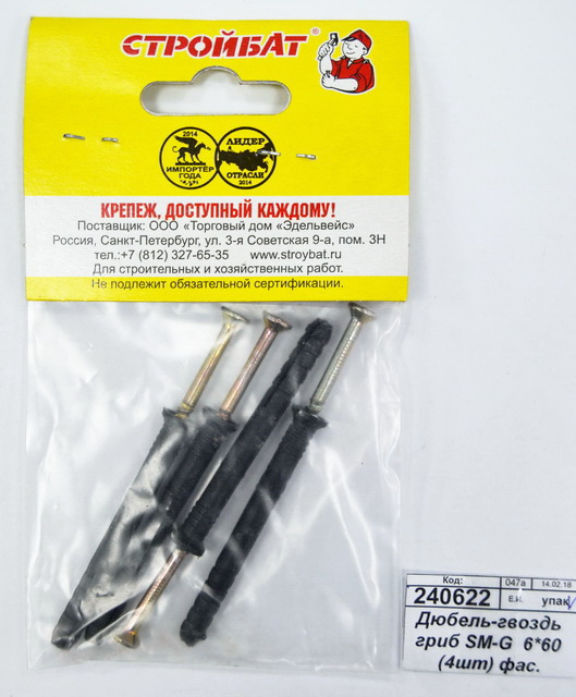 Применение: для крепления различных деталей к бетону, полнотелому кирпичу методом сквозного монтажа. Состоит из дюбеля с двухсегментной распорной частью с потайным бортиком, предотвращающим проваливание дюбеля в монтажное отверстие, и гвоздя с ударной резьбой. Используется преимущественно в быту и строительстве.