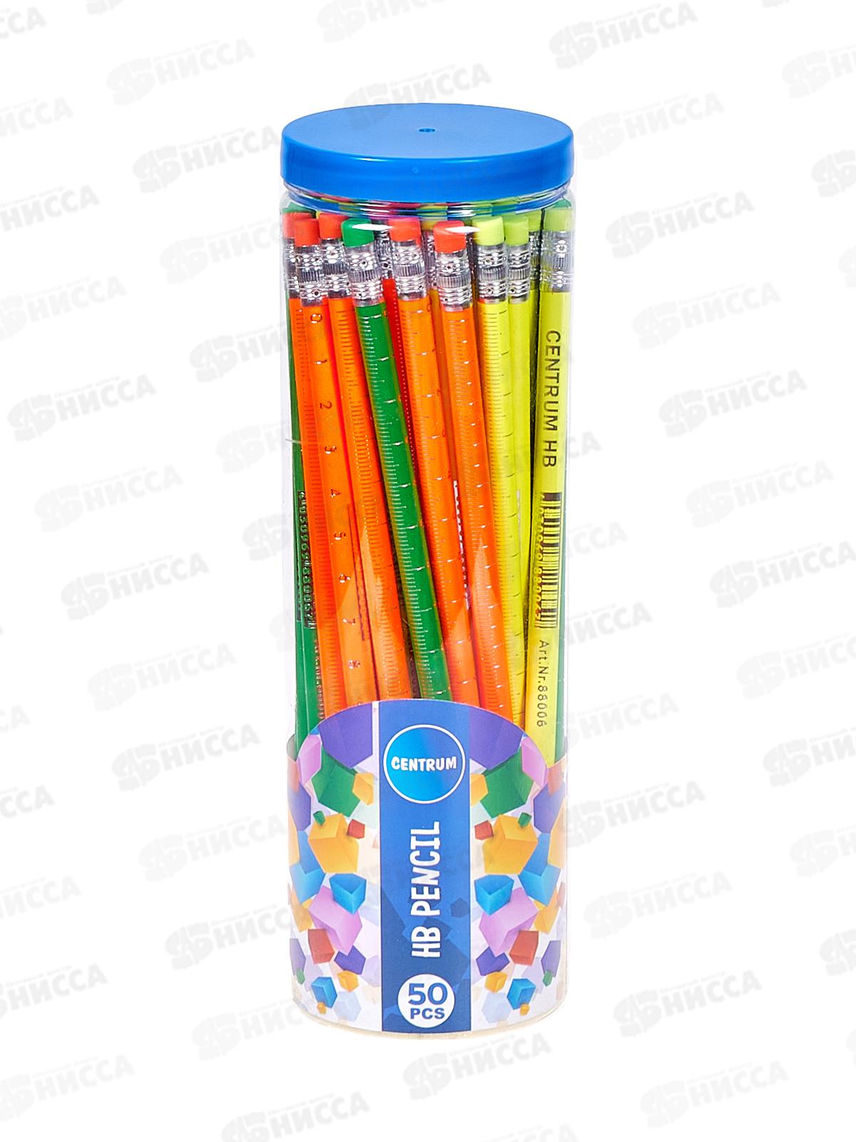 Карандаш чернографитный с ластиком CENTRUM HB заточенный,в тубусе, 88006 *50
