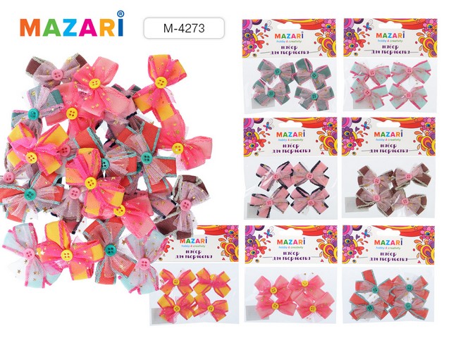 Набор для творчества Бантики с пуговицей., 4шт, 7 цветов , М-4273*24