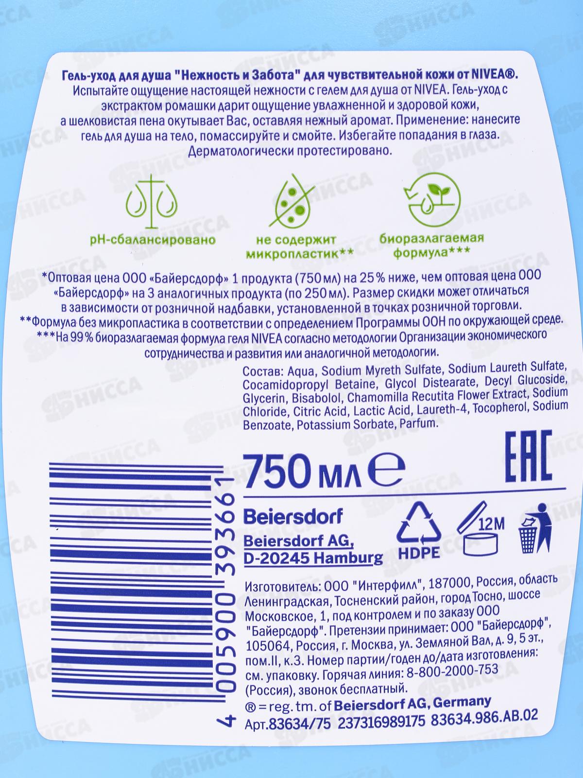 НИВЕЯ гель для душа 750мл Нежность и забота *6 83634