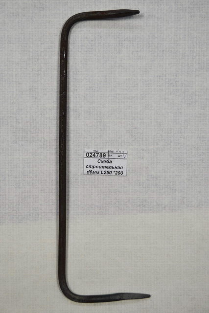 Скоба строительная 250х6 мм предназначена для укрепления венцов и всей стропильной системы при сборке деревянных домов. Скобы строительные применяются для соединения оцилиндрованных бревен, бруса.
