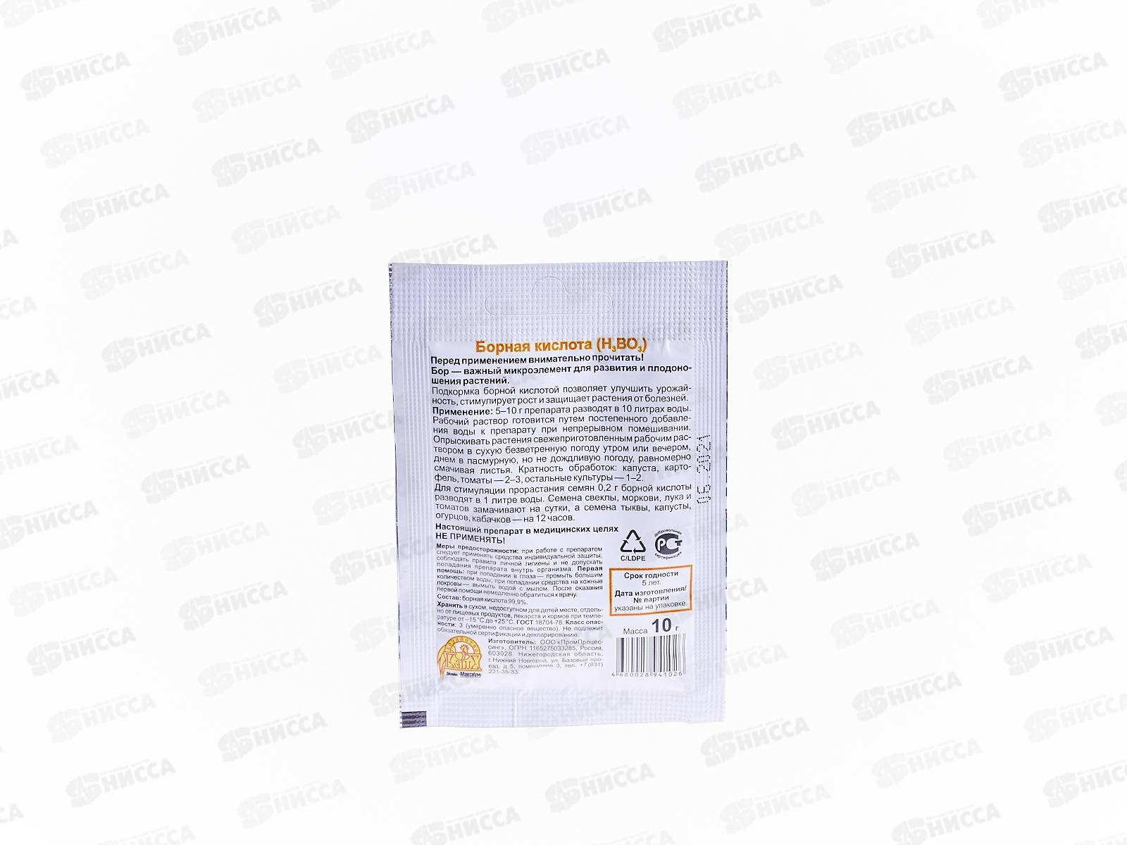 БОРНАЯ Кислота пакет 10г *400 ВХ