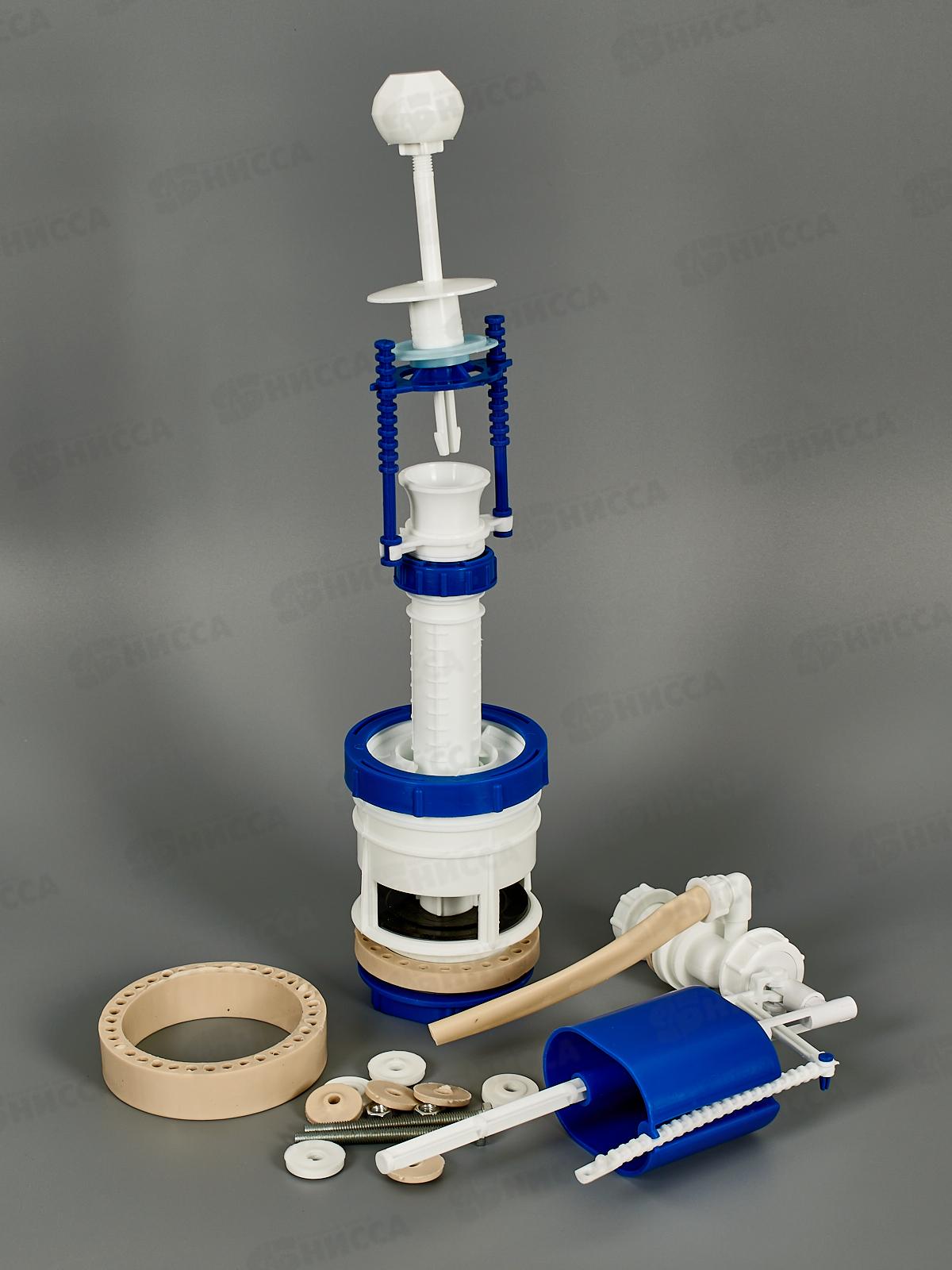 Арматура АС-5.1 универсальная штоковая с универсальным клапаном боковой подводки воды. Арматура является универсальной: может устанавливаться и на «низкие» бачки (высота до крышки бачка 270-280 мм), «средние» (высота до крышки бачка до 390 мм), «высокие» (высота до крышки бачка 425 мм), а конструкция втулки позволяет использовать ее как с узким отверстием крышки бачка (24 мм), так и с широким (40 мм).