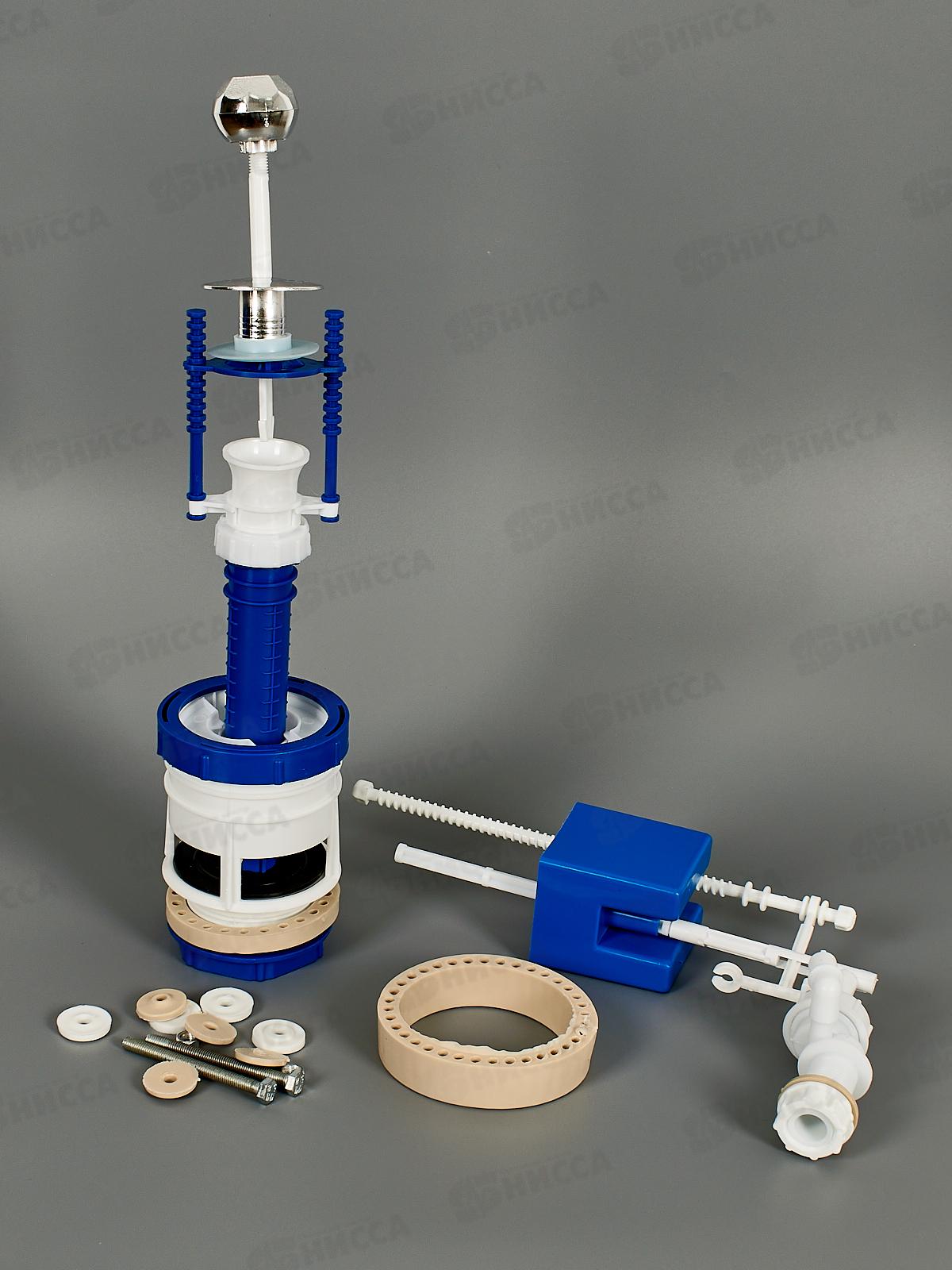 Арматура АС-5.1 универсальная штоковая с универсальным клапаном боковой подводки воды. Арматура является универсальной: может устанавливаться и на «низкие» бачки (высота до крышки бачка 270-280 мм), «средние» (высота до крышки бачка до 390 мм), «высокие» (высота до крышки бачка 425 мм), а конструкция втулки позволяет использовать ее как с узким отверстием крышки бачка (24 мм), так и с широким (40 мм).