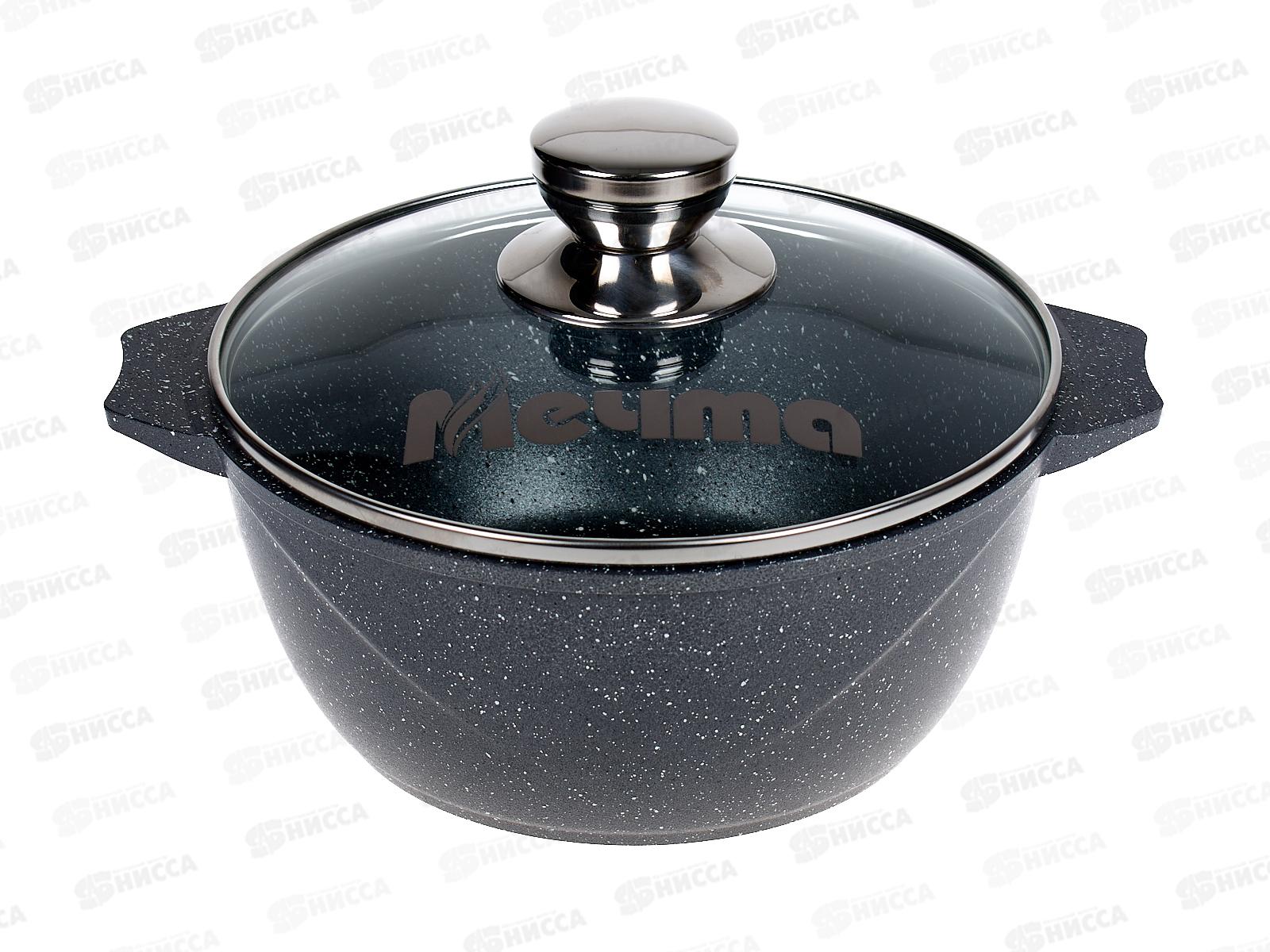 Кастрюла со стеклянной крышкой объемом 2 литра, Мечта Гранит. Кастрюля литая из высококачественного пищевого алюминия. Сверхпрочное антипригарное покрытие отличается особой износостойкостью и превосходными антипригарными свойствами, рассчитано на интенсивное использование в течение длительного срока. Толщина покрытия до 55 мкр позволяет готовить с минимальным количеством масла, сохраняя вкусовые и полезные свойства продуктов. Подходит для использования на газовых, электрических, стеклокерамических кухонных плитах, в духовом шкафу. Можно мыть в посудомоечной машине
