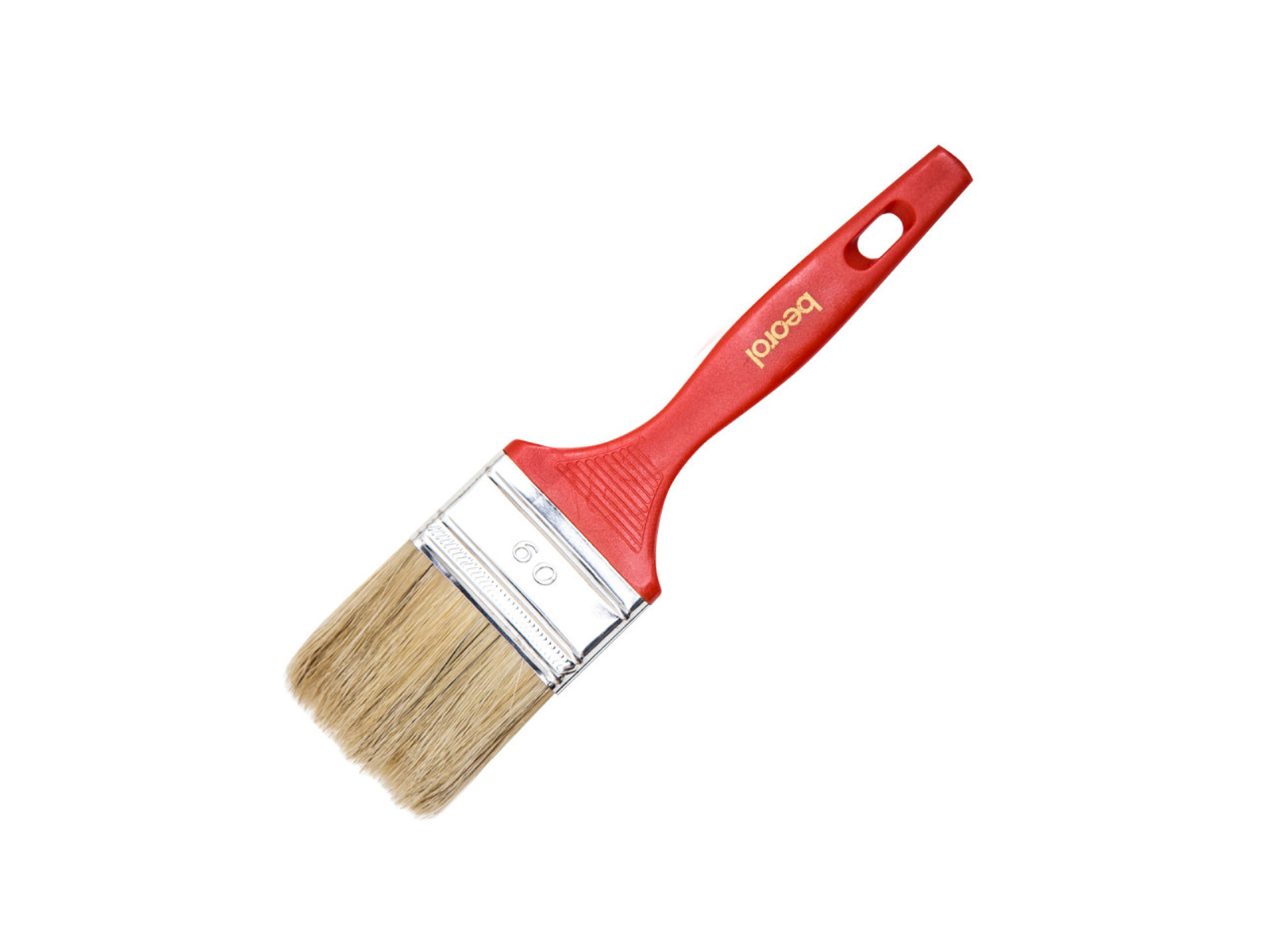 Плоская кисть для лака с красной ручкой с отверстием для подвешивания. Используется для работ с материалами на водной основе, лаками, пропитками и морилками. Предназначена для лакирования поверхностей и работ с материалами на водной основе.