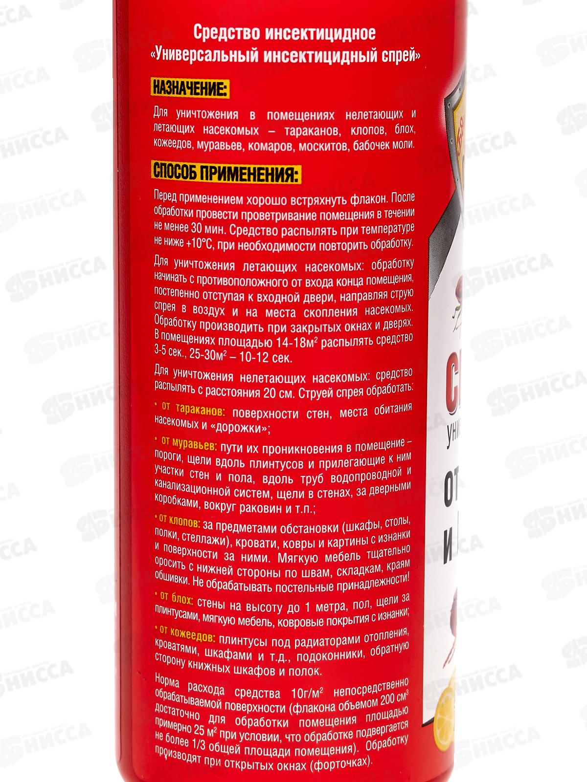 Универсальный спрей от клопов, блох, а также тараканов, муравьев, комаров, моли, кожееда, 200 мл от Бдительный Страж. Перед применением хорошо встряхнуть флакон. После обработки провести проветривание помещения в течении не менее 30 мин. Средство расп