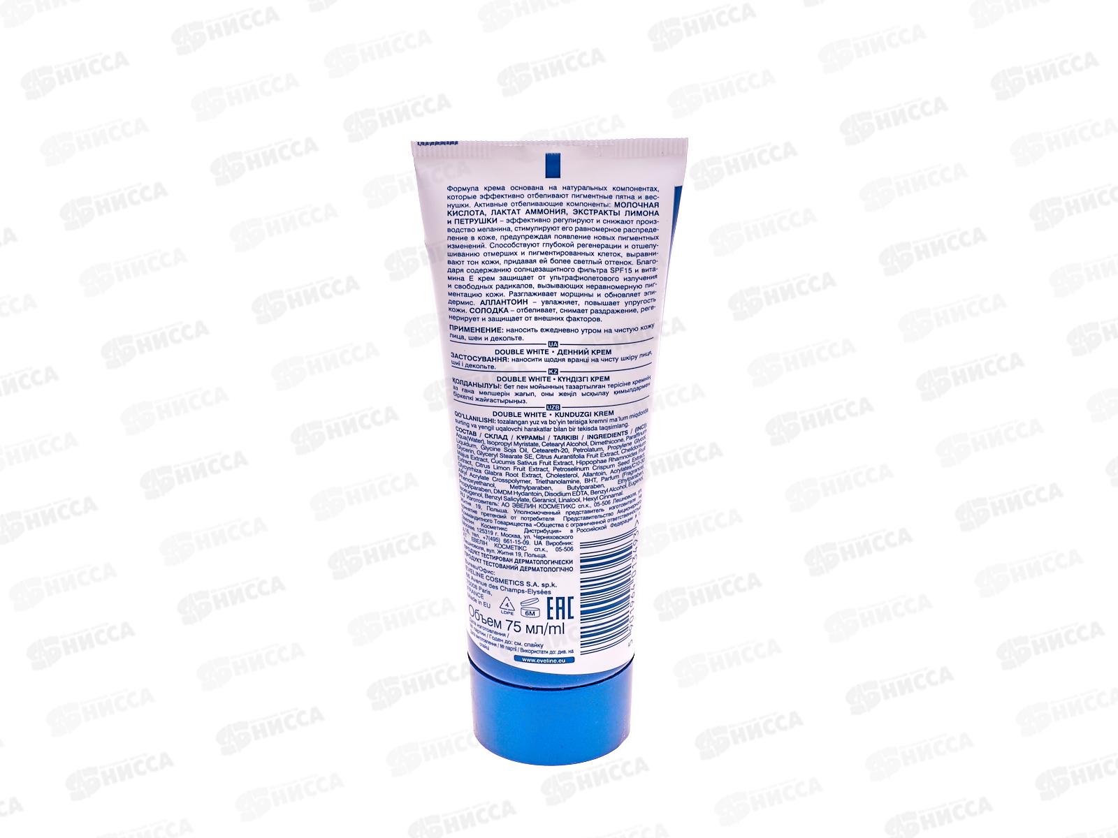 Дневной крем 3 в 1 "Удвоенное Отбеливание" Eveline Cosmetics Double White - натуральный осветлитель пигментных пятен, который идеально выравнивает тон кожного покрова. Состав средства обогащен молочной кислотой, лактатом аммония, экстрактами лимона и петрушки, которые эффективно регулируют и сдерживают выработку меланина, стимулируя его равномерное распределение в коже и предупреждая появление новых пигментных изменений. Состав: Aqua(Water), Isopropyl Myristate, Cetearyl Alcohol, Dimethicone, Paraffinum Liquidum, Glycine Soja Oil, Ceteareth-20, Petrolatum, Propylene Glycol, Glycerin, Glyceryl Stearate SE, Citrus Aurantifolia Fruit Extract, Chelidonium Majus Extract, Cucumis Sativus Fruit Extract, Hippophae Rhamnoides Fruit Extract, Citrus Limon Fruit Extract, Petroselinum Crispum Seed Extract, Glycyrrhiza Glabra Root Extract, Cholesterol, Allantoin, Acrylates/C10-30 Alkyl Acrylate Crosspolymer, Triethanolamine, BHT, Parfum (Fragrance), Phenoxyethanol, Methylparaben, Butylparaben, Ethylparaben, Propylparaben, DMDM Hydantoin, Disodium EDTA, Benzyl Alcohol, Eugenol, Isoeugenol, Benzyl Salicylate, Geraniol, Linalool, Hexyl Cinnamal