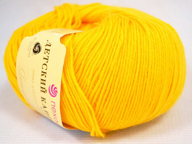 Пряжа Детский каприз теплый желток мериносовая шерсть50% фибра50% 50гр 125м 12