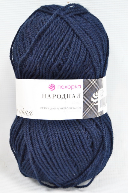 Пряжа Народная темно-синий шерсть30% акрил70% 100гр 220м 04
