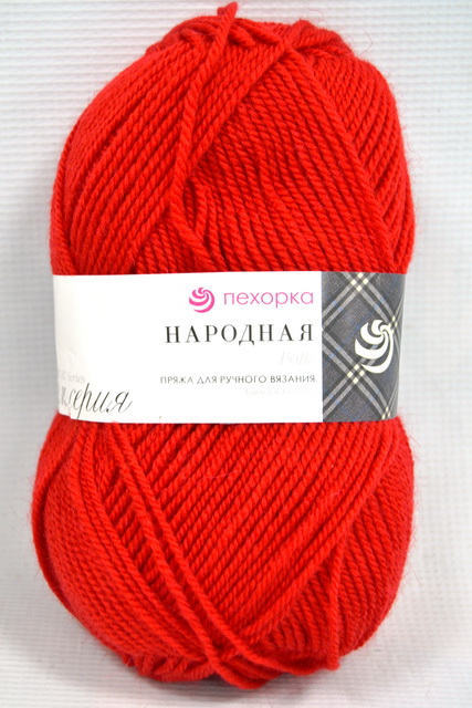 Пряжа Народная красный мак шерсть30% акрил объемный70% 100гр 220м 88