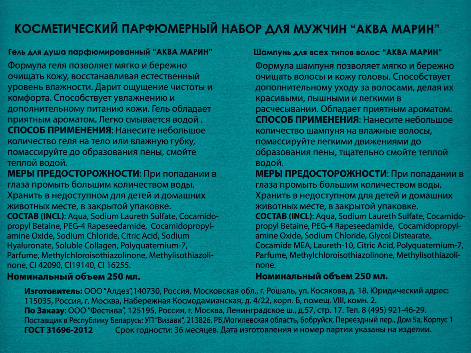Набор подарочный Aqua Marine 361 (шампунь 250мл + гель для душа 250мл) мужской *10