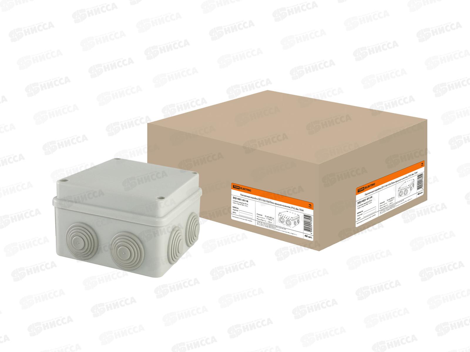 Распаячная коробка ОП 110х110х70мм, крышка на винтах, IP55, 8вх., 01114, TDM *48
