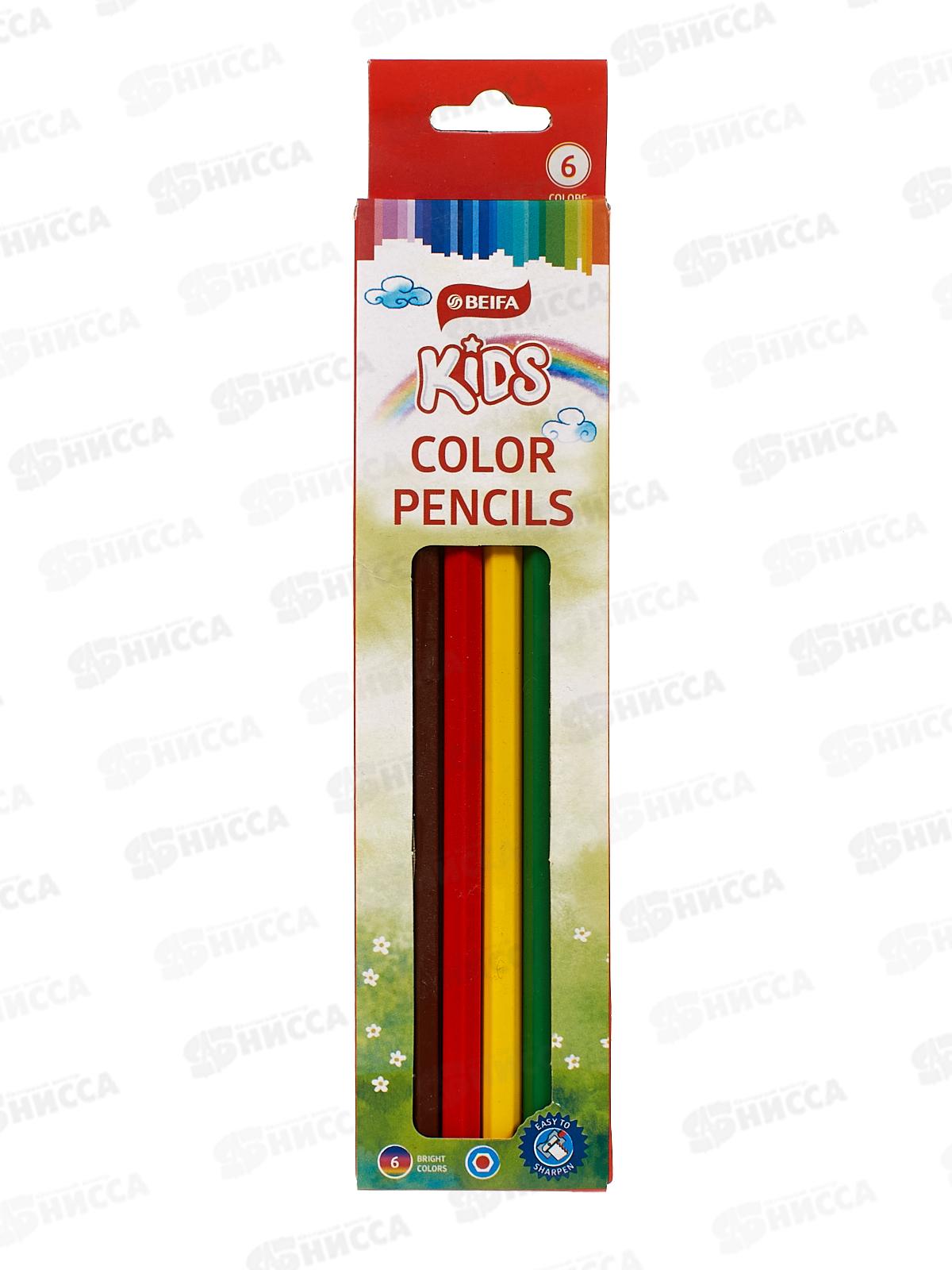 Карандаши 6 цветов BEIFA Яркий мир, BRMC 00001 *24/288