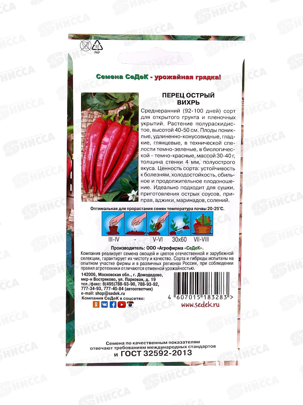 Среднеранний (92-100 дней) сорт для открытого грунта и пленочных укрытий. Растение полураскидистое, высотой 40-50 см. Плоды пониклые, удлиненно-конусовидные, гладкие, глянцевые, в технической спелости темно-зеленые, в биологической – темно-красные, массой 30-40 г, толщина стенки 4 мм, полуострого вкуса. Ценность сорта: устойчивость к болезням, холодостойкость, обильное и продолжительное плодоношение. Идеально подходит для сушки, приготовления острых соусов, приправ, аджики, маринадов, солений.