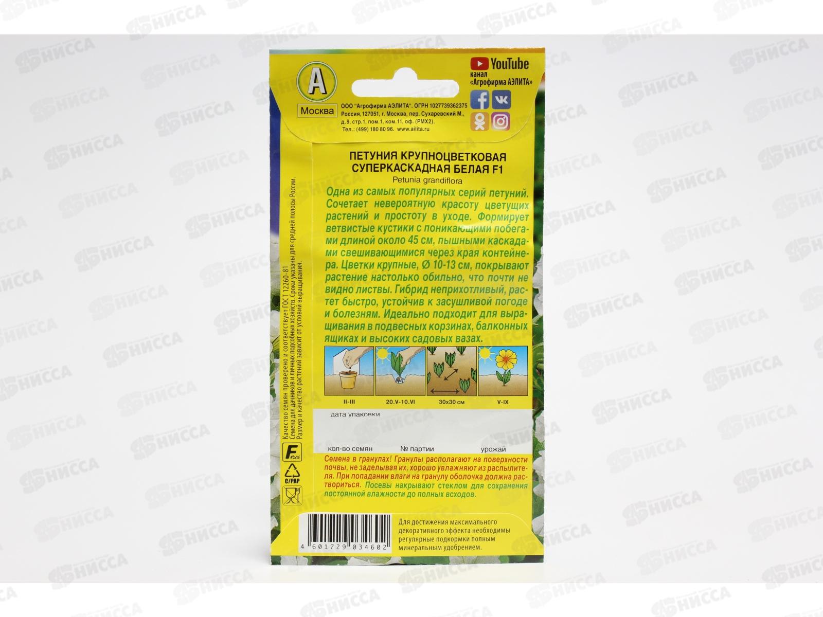 Кусты высотой 25-40 см, с поникающими побегами длиной до 45 см. Цветки крупные, диаметром 10-13 см. Гибрид неприхотливый, устойчив к неблагоприятным погодным условиям, растет быстро. Идеально подходит для выращивания в подвесных корзинах, балконных ящиках и высоких садовых вазах. Семена в гранулах! Гранулы располагают на поверхности почвы, не заделывая их, хорошо увлажняют из распылителя. При попадании влаги на гранулу оболочка должна раствориться. Посевы накрывают стеклом для сохранения постоянной влажности до полных всходов. Февральским посевам требуется дополнительная подсветка.