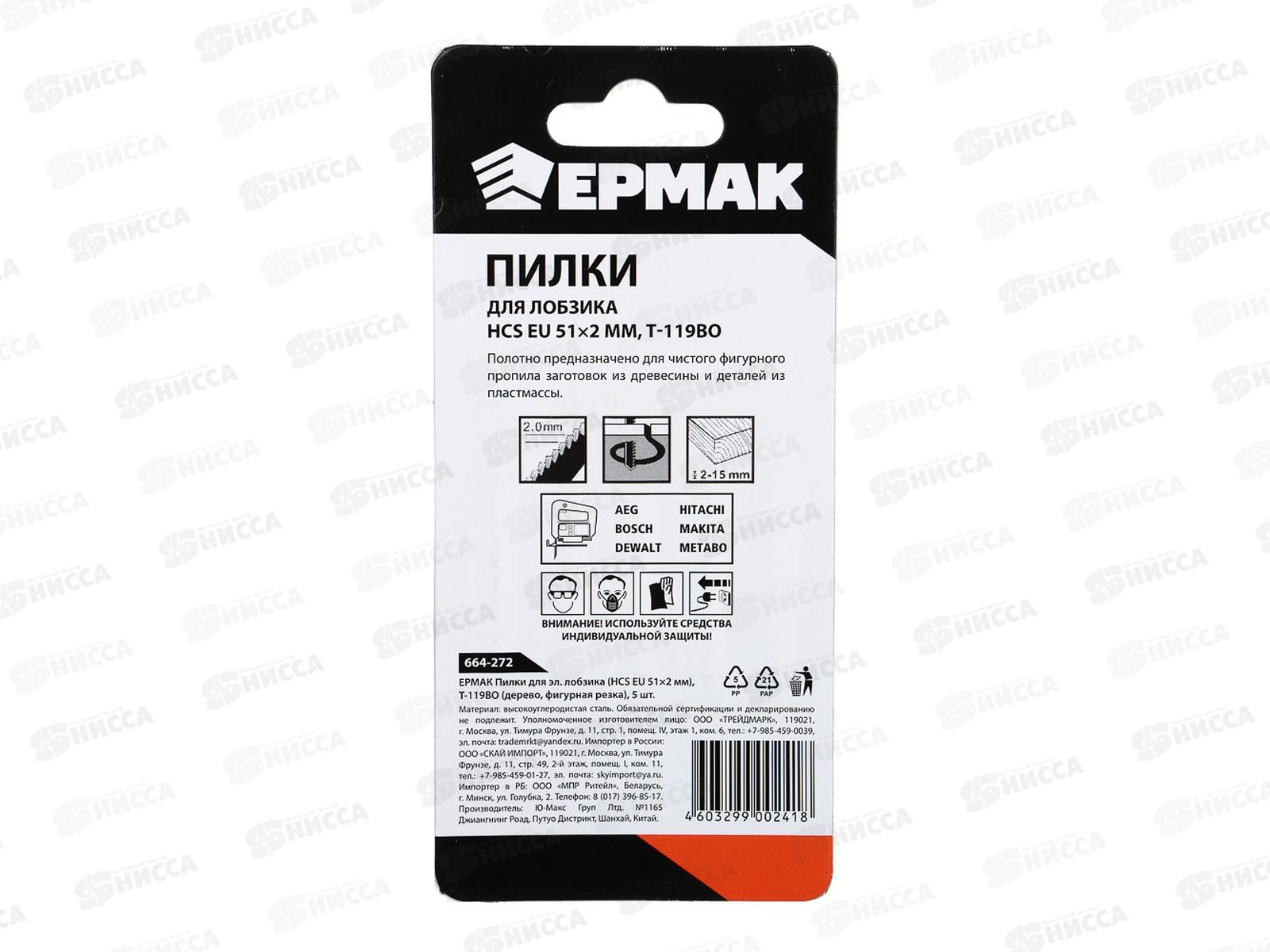 Полотно для лобзика HCS EU 51x2 мм, T-119ВО предназначено для чистого фигурного пропила заготовок из древесины и деталей из пластмассы.