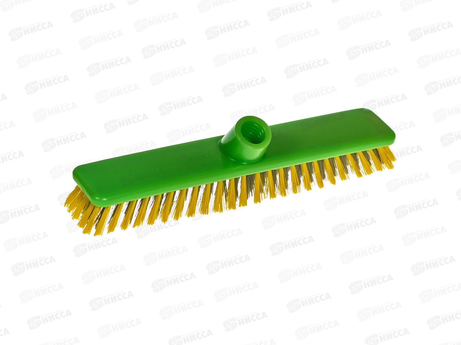Щетка с жесткой нераспушенной щетиной для стойких загрязнений. Крепление к черенку под углом, что обеспечивает минимальные усилия при уборке. Длина 27 см, ширина 5 см, высота 3,5 см.