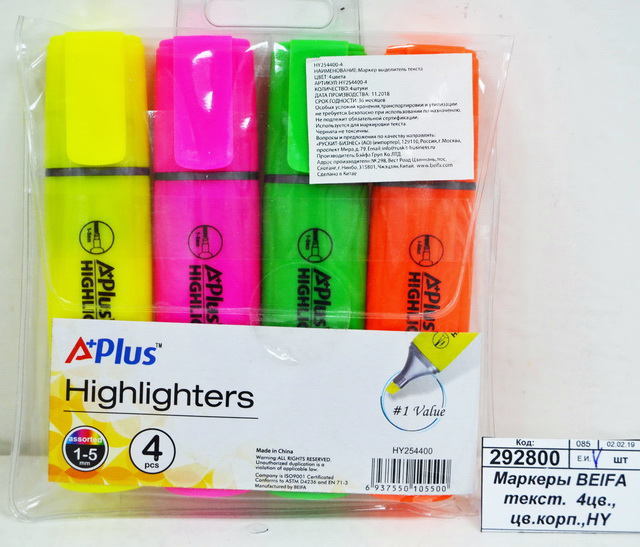 Маркеры BEIFA текстовый 4цвета, цветной корпус,HY 254400-4 *24/144