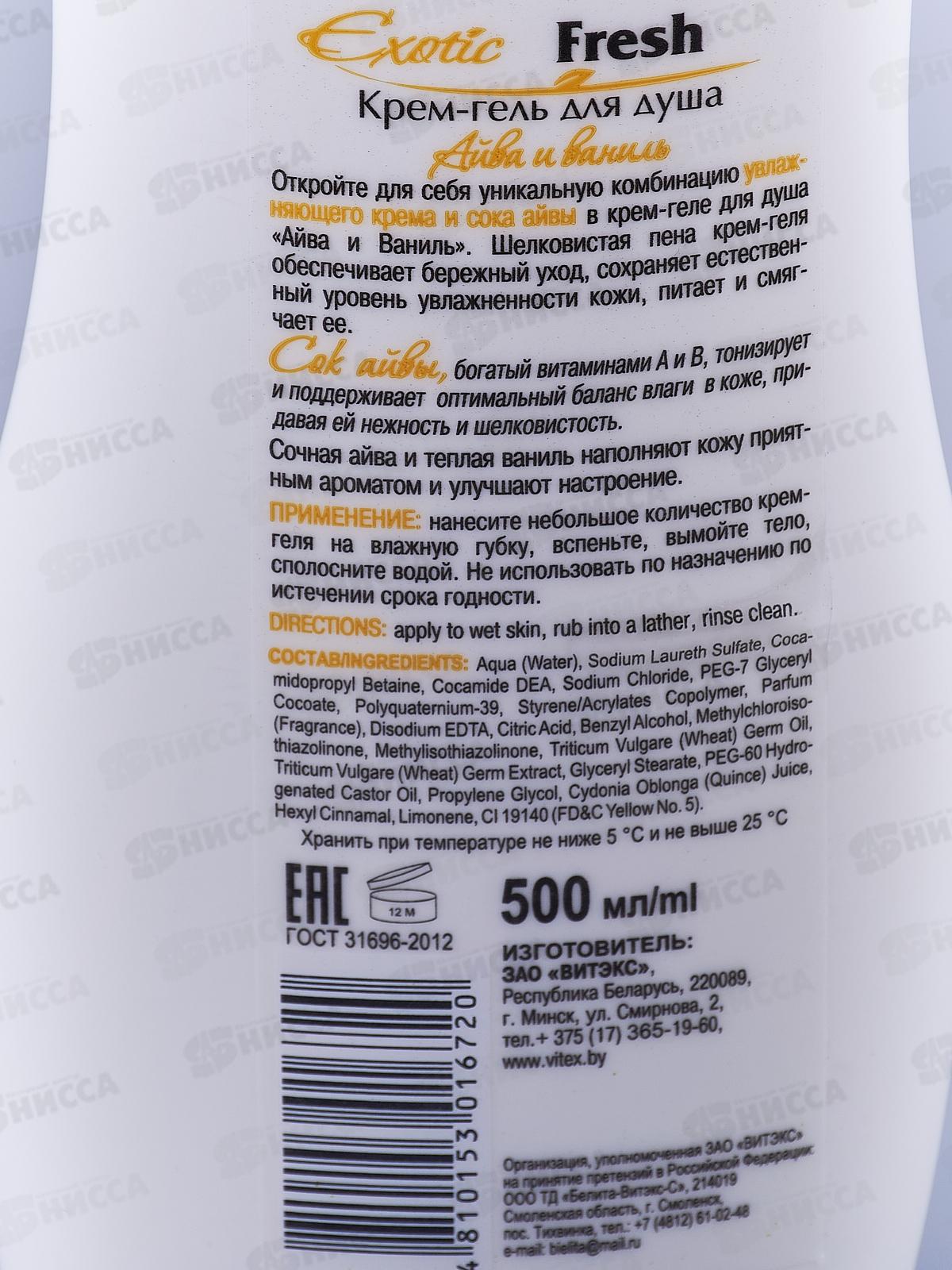 EXOTIC FRESH крем-гель для душа Айва и Ваниль 500мл *20