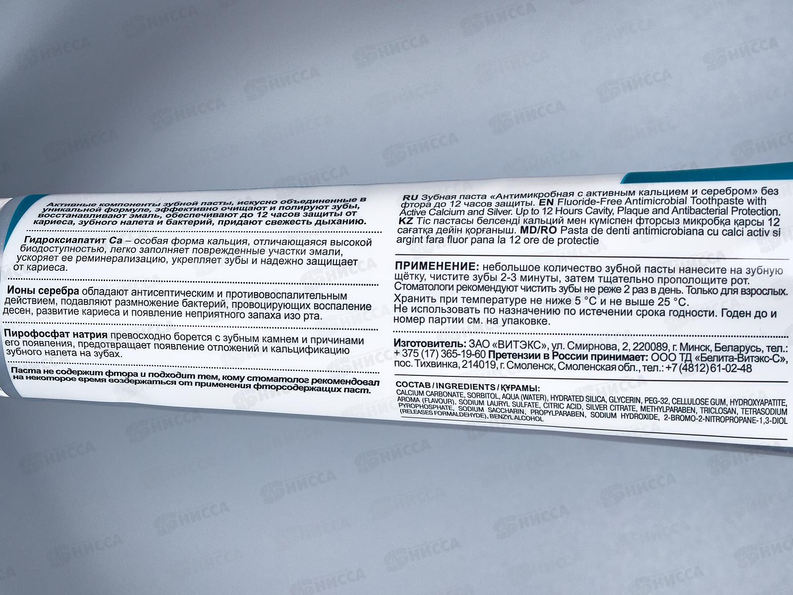 Паста предназначена для тех, кому врач рекомендовал на некоторое время воздержаться от применения фторсодержащих паст, рекомендуется применять зубную пасту с серебром и без фтора. Содержащееся в зубной пасте коллоидное серебро препятствует развитию микроорганизмов, вызывающих кариес и заболевания пародонта. Натуральная чистящая основа мягко и эффективно удаляет зубной налет.