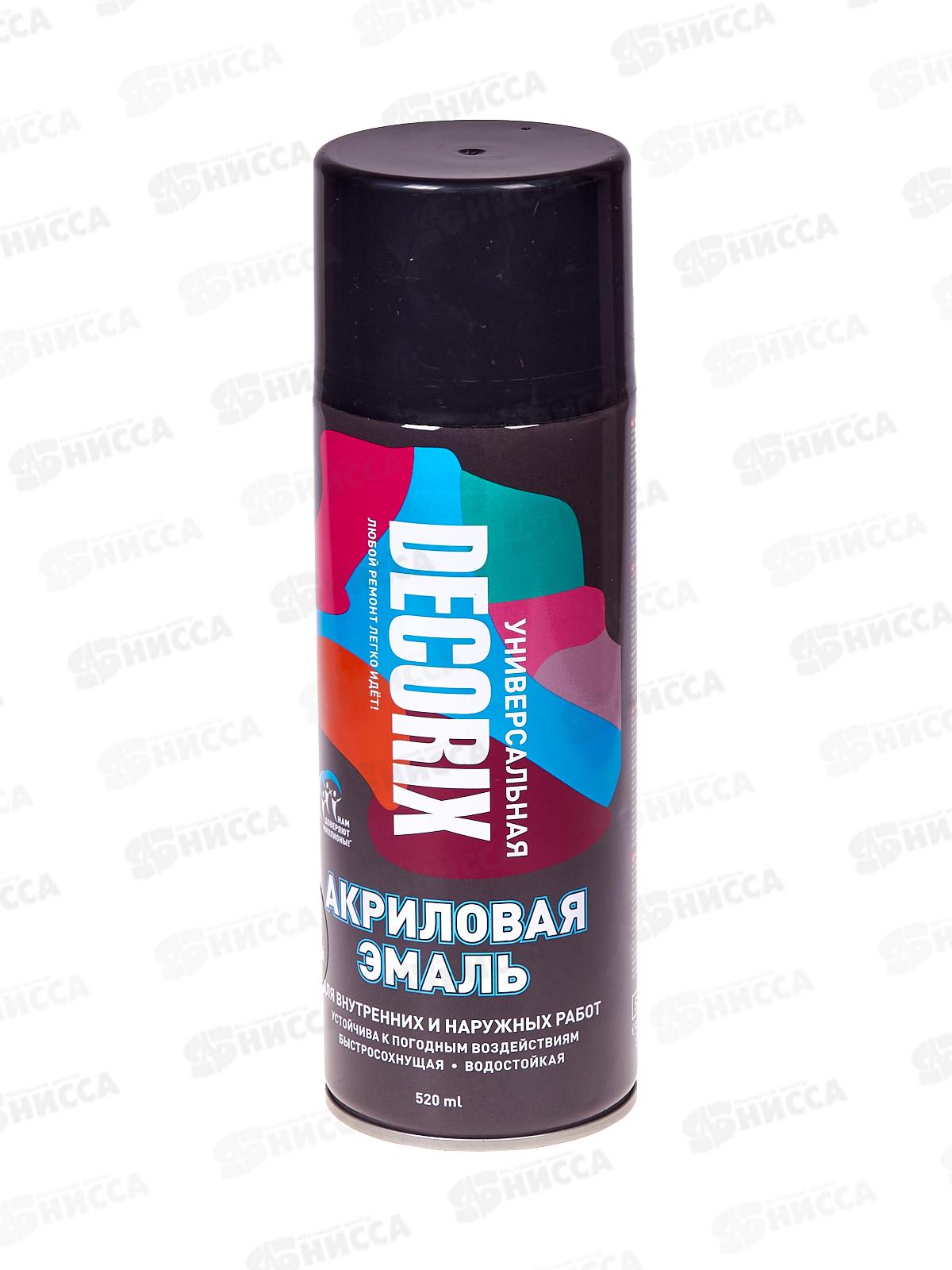 Аэрозольная эмаль акриловая универсальная DECORIX 520мл, цвет-черный глянцевый *12