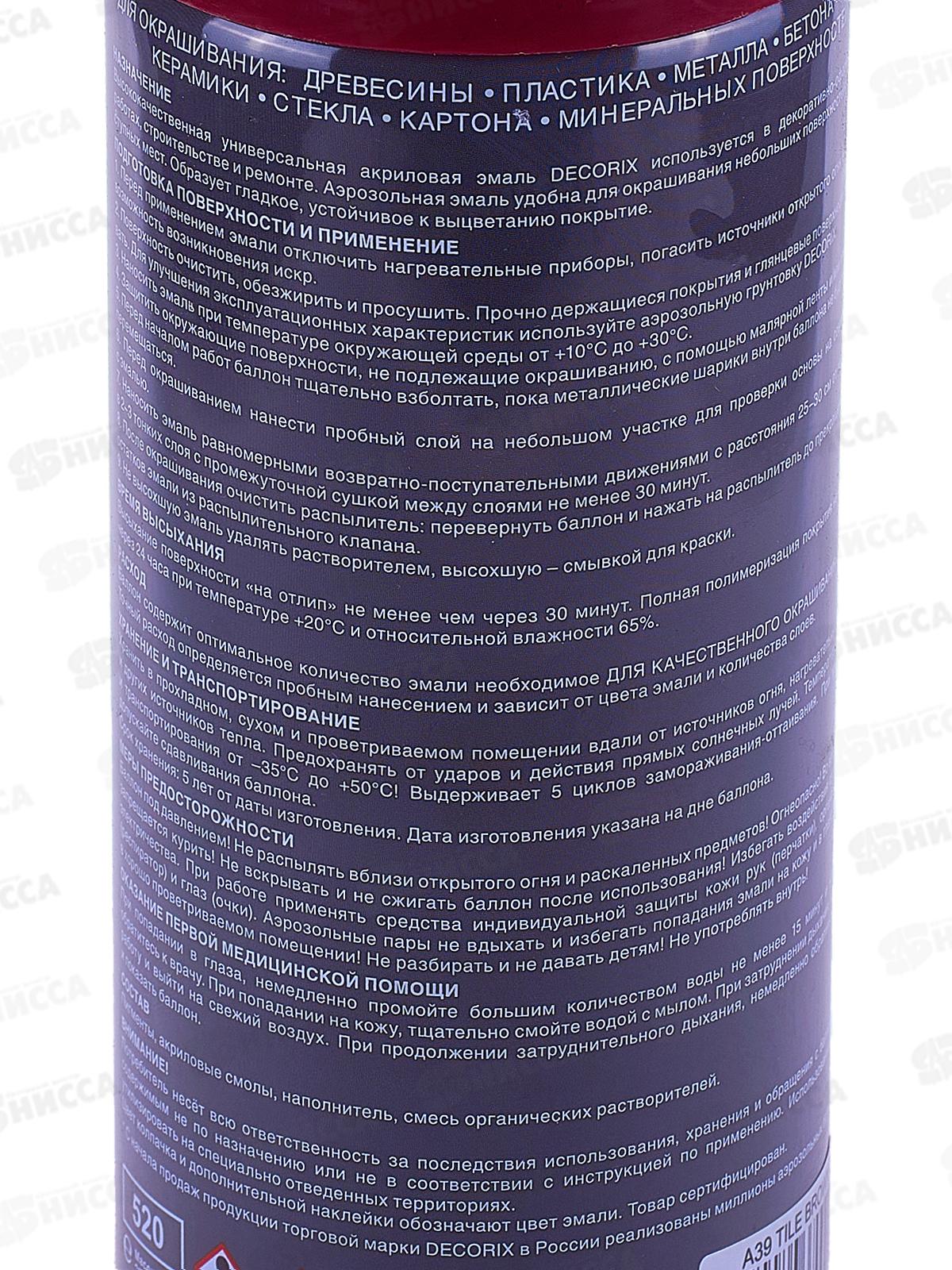 Высококачественная универсальная акриловая глянцевая эмаль DECORIX используется в декоративно-оформительских работах, строительстве и ремонте. Предназначена для окрашивания: древесины, пластика, металла, бетона, кирпича, керамики, стекла, картона, минеральных поверхностей. Аэрозольная эмаль удобна для окрашивания небольших поверхностей и труднодоступных мест. Образует гладкое, устойчивое к выцветанию покрытие.