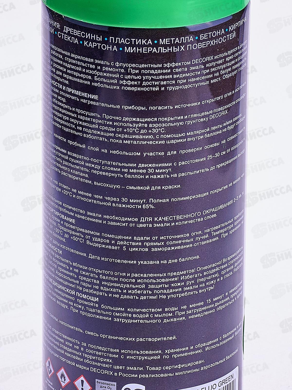 Аэрозольная эмаль флуоресцентная DECORIX, 520мл, зелёный *12