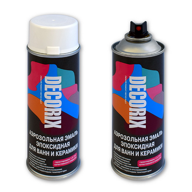 Высококачественная эпоксидная эмаль DECORIX предназначена для ремонтного окрашивания керамических и эмалированных поверхностей. Применяется для окрашивания эмалированных ванн, умывальников, душевых поддонов, кухонных раковин, мебели и инструментов. Аэрозольная эмаль удобна для окрашивания не очень больших поверхностей и труднодоступных мест. Эмаль образует гладкое глянцевое покрытие, устойчивое к трещинам и царапинам.