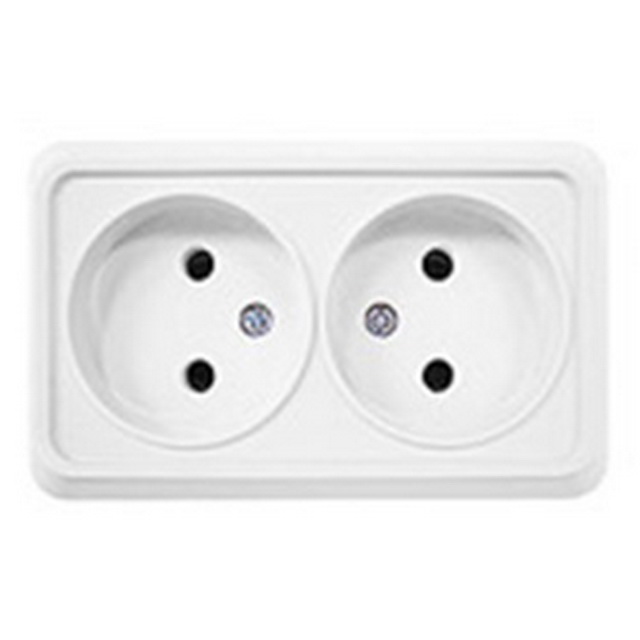 Розетка открытая установка 2 местная Прогресс белая *10/200