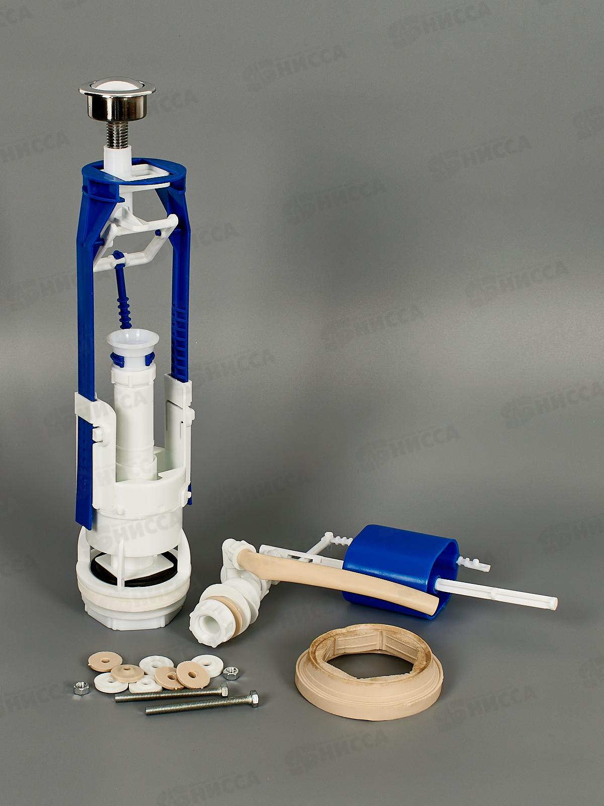 Арматура АС-16.2М кнопочная с универсальным клапаном боковой подводки воды. Открывает новое семейство кнопочных арматур ООО фирма "РБМ". Конструктивные решения, использованные в семействе, выгодно отличают их от арматур других производителей. Предусмотрена возможность производить регулировку положения кнопки в горизонтальной плоскости в более широком диапазоне, что позволяет устанавливать арматуру в бачки с несовпадением по вертикали отверстия в крышке бачка и смывного отверстия (смывные бачки 2го и 3го сорта). Высота комплектуемого бачка от дна до верха крышки от 300 до 400 мм. Фиксация стоек, при настройке арматуры по высоте, осуществляется упругими элементами опоры. Полный смыв осуществляется с фиксацией корпуса перелива.
