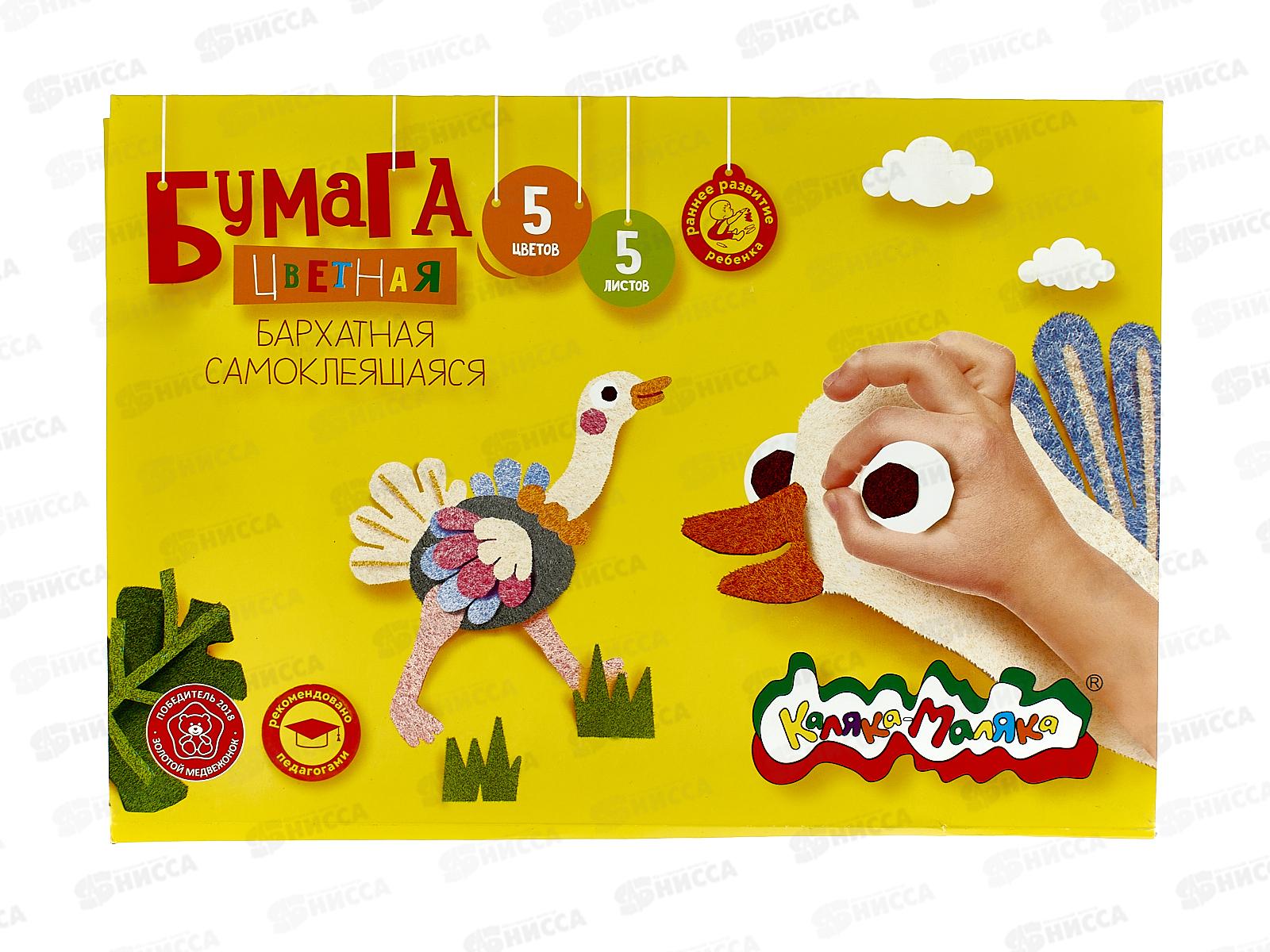 Цветная бумага самоклеющаяся бархатная 5листов 5цветов Каляка-Маляка 175*250, ББСКМ5-1 *100