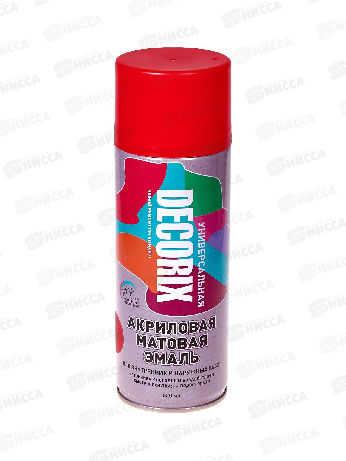 Аэрозольная эмаль акриловая универсальная DECORIX 520мл, цвет-красный матовый *12