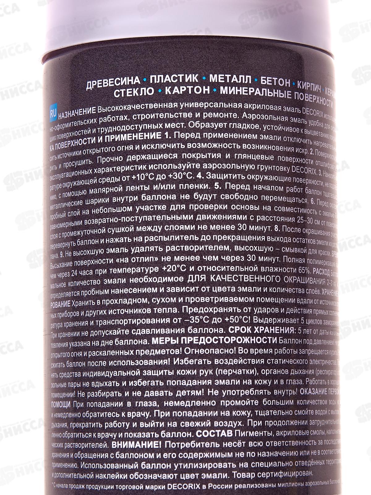 Высококачественная универсальная акриловая глянцевая эмаль DECORIX используется в декоративно-оформительских работах, строительстве и ремонте. Предназначена для окрашивания: древесины, пластика, металла, бетона, кирпича, керамики, стекла, картона, минеральных поверхностей. Аэрозольная эмаль удобна для окрашивания небольших поверхностей и труднодоступных мест. Образует гладкое, устойчивое к выцветанию покрытие.