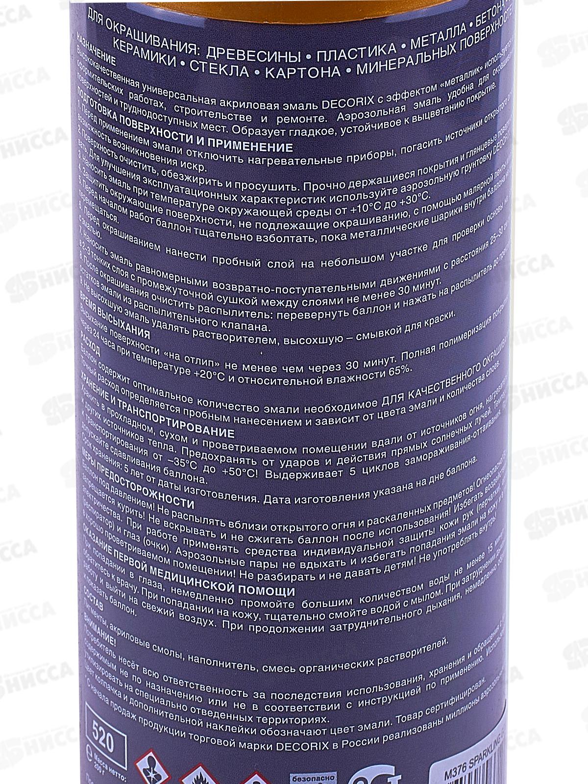 Аэрозольная эмаль "металлик" DECORIX, 520мл, искрящееся золото *12