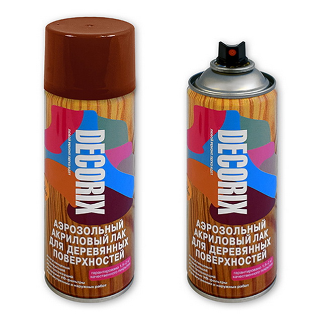 Высококачественный тонирующий акриловый лак DECORIX предназначен для декорирования поверхности под ценные породы дерева, придания желаемого цвета и подчёркивания естественной текстуры древесины. Создаёт защитно-декоративное покрытие при бытовом применении, декоративно-оформительских работах, строительстве и ремонте. Применяется для лакирования мебели, дверей, садовой мебели, багета, декорирования помещений и других видов творческих и хозяйственных работ. Лак обеспечивает устойчивость покрытия к механическим воздействиям и истиранию, обладает оптимальным соотношением твёрдости и эластичности, содержит УФ-фильтры. Образуемое покрытие устойчиво к воздействию воды и бытовой химии. Аэрозольный лак удобен для лакирования небольших и труднодоступных поверхностей.