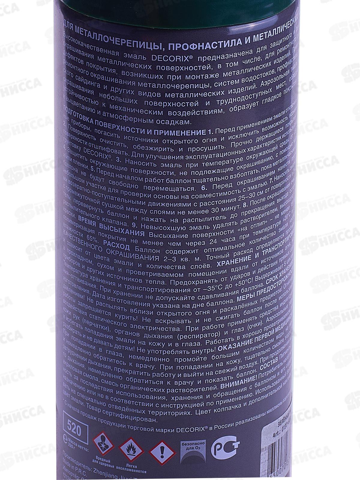 Аэрозольная эмаль для металлочерепицы и профнастила DECORIX, 520мл, зеленый мох RAL6005