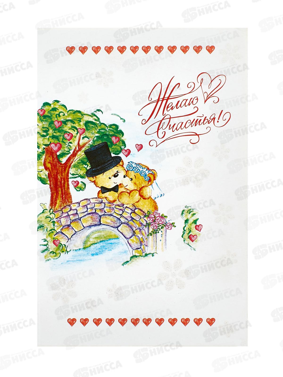 Открытка MI А5 Желаю счастья! Мишки жених и невеста, 5-09-0202 *10