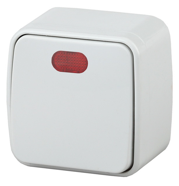 Выключатель1-клавишный с подсветкой серии Intro Polo открытой установки цвет белый 3-102-01. Номинальные характеристики 10А 250В. Выключатель выполнен из качественного термопласта, стали и латуни, оснащён винтовыми зажимами.
