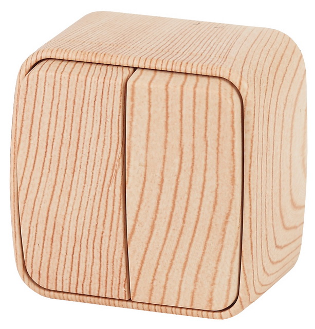 Выключатель INTRO Polo двухклавишный, открытой установки, IP20, 10А-250В, сосна, 3-104-11 *18