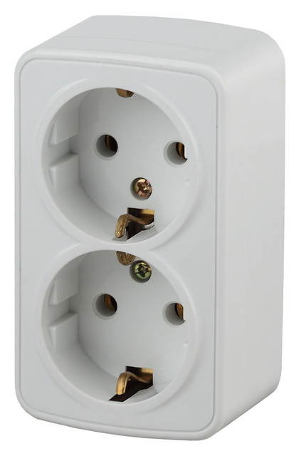Розетка INTRO Polo открытой установки, 2местный, белый, с заземлением, 3-204-01 *12