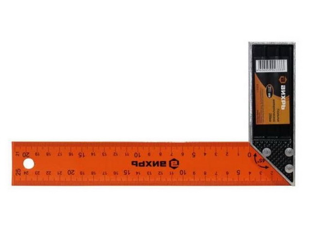 Металлический угольник 250 мм Вихрь 73/11/3/1 имеет высокую прочность и легко справляется с определением углов 45 и 90 градусов. Прочная конструкция имеет небольшой вес и обеспечивает хорошее качество работы. Благодаря разметке можно определять расстояние от 0 до 250 мм.